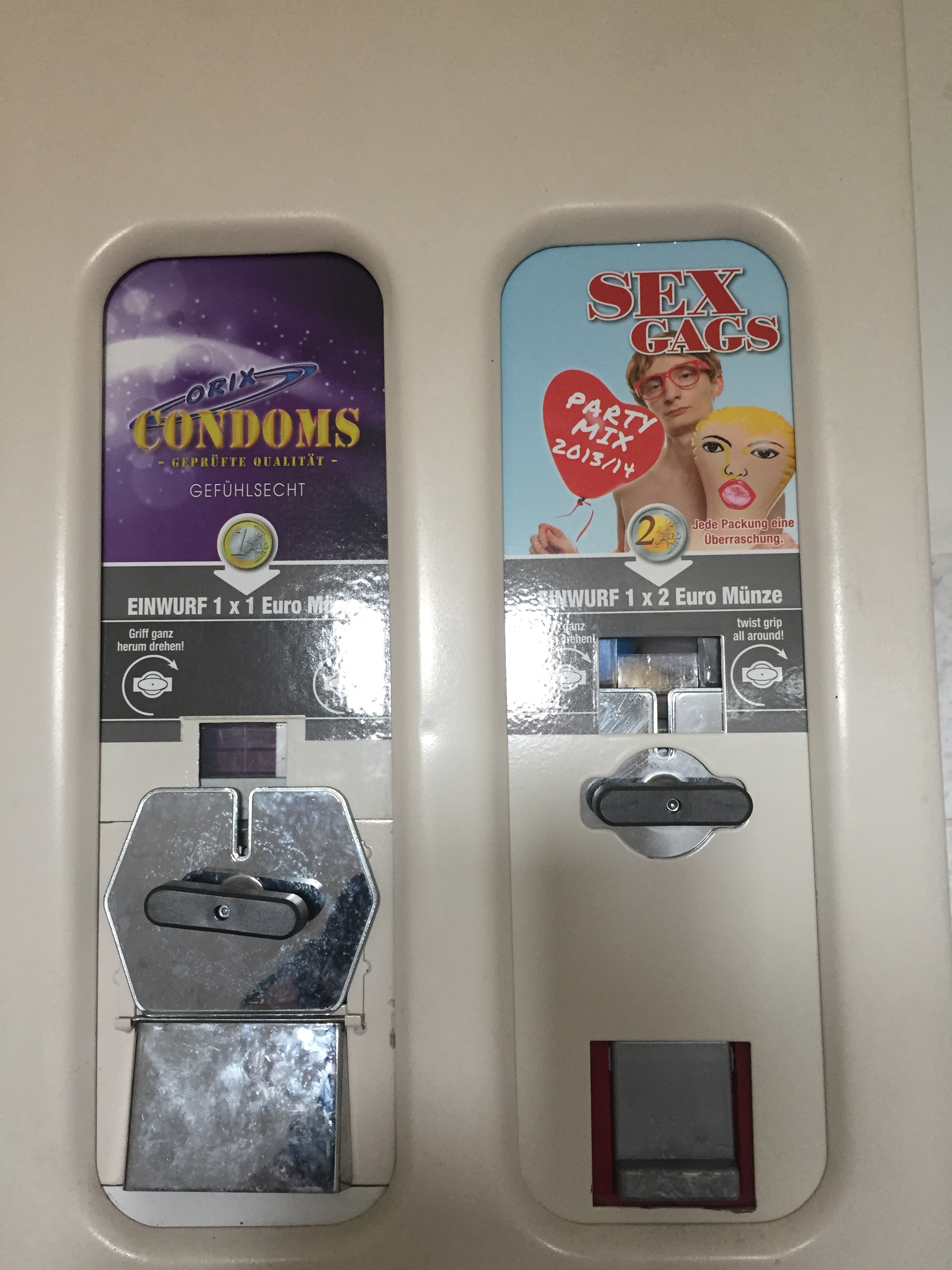The campsite in Fall was a bit weird.. actually it turned out to be great, but first impressions were slightly scary. First, it was basically a run down, slightly dirty country pub with a bit of grass for tents. Second, in the grim toilets were various machines, for sex related things, such as this one.