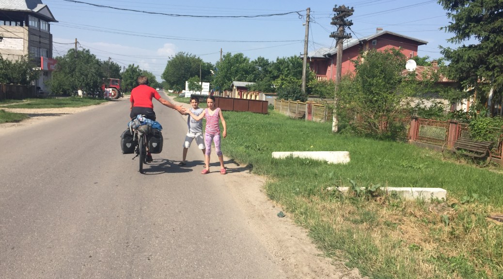 So to the cycling… This part of Romania is as about as rural as it can get. And the cycling would be great, if the road surface was, and the heat 20 degrees lower!! We basically spent all day cycling 5km in the countryside, then 3km through a village…repeat 50 times! Each village is almost identical to the other – with people sitting in the shade on the side of the road… that’s it really – they are just sitting there. Very simple rural folk, who, when the sun is a little lower, travel to the fields on their horse drawn carts ant tend fields manually. Here are some shots: