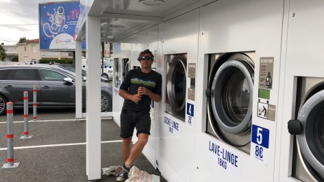 I say ‘doing the laundry’ – we did it in the car park of a supermarche – right across the road. Slightly mad, and madder that Rob, and Polly, met us there in there car – whilst doing a shop for their holiday and coming to get Rob’s stuff from Kevin and Abigail. It was odd though – and having a final beer with rob in a car park was perhaps not the most fitting good bye – I was still emotional.