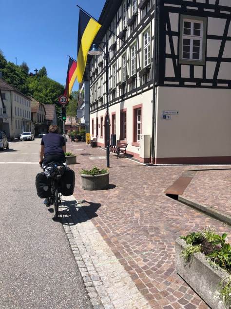 We circled Offenburg and pressed on to the foothills of what would be some considerable climbs. I should pause here on Offenburg… I have been here before – 21 years ago. This may come as a shock – or largely just a source of great amusement to some – but in my teens I was hugely religious. Or should I say, I had faith and was practising (I still have some sort of faith). Back to the story though – when I was 16, I was briefly a missionary (I know – madness to think – especially if you know me) – and it was in Offenburg I spent 5 days at a huge Christian gathering known as ‘Love Europe’ – before being sent in small teams to do just that – I spent a long time on a campsite in Hungary – largely playing the guitar and singing shine Jesus Shine. I still love Europe – and it’s somehow fitting on the day of the European Elections to say that. I do.