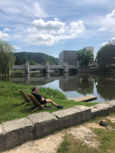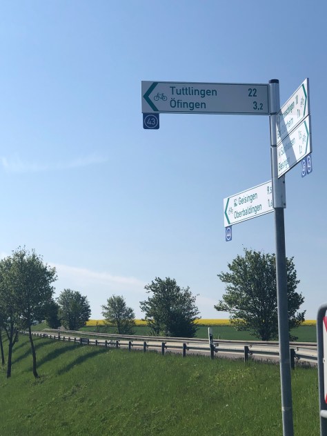 After Matt had picked himself up off the ground – yes he actually fell off his bike – which was surprising given his self processed legendary bike handling skills. we stopped for lunch in Tuttlingen, just as we did 4 years ago, by the river.