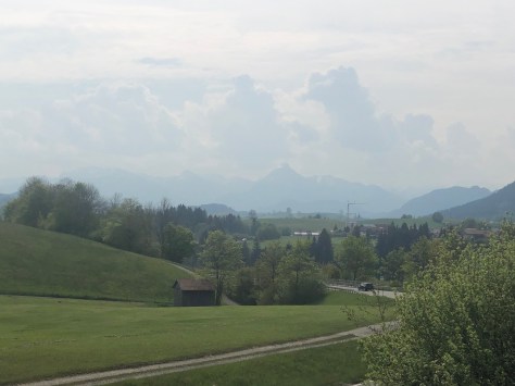 We had always planned on yesterday being a rest day – so instead of full on resting we decided to do a bit more inter railing. And get ahead of the itinerary. It was becoming increasingly clear to us that 100 mile days with large uphills just were not achievable, at least not if we wanted to have some semblance of an evening. And so we spent the afternoon on trains getting to Kempten. This achieved 2 things – it gave us some rest, and it reduced today’s ride through the Tyrol to 40, achievable miles. From here on in each day will be 40 miles or less, albeit with mountains thrown in. We think we can achieve that. It also gave us an amazing journey around Lake Konstanz – something I’d never seen before – and our first view of the alps ahead.