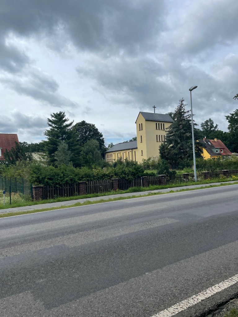 I made reasonable pace, although already through gritted, cursing teeth to Potsdam. Which from the banks of the ‘see’ (pronounced zay (I think) and means Loch (lake to some)) looked stunning with a big Basilica standing out above the town. As I got into the town though I was reminded, quite brutally that I was in what was East Germany…
