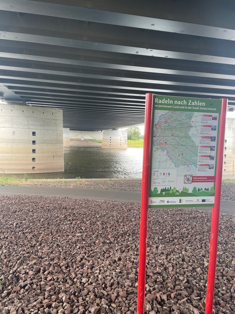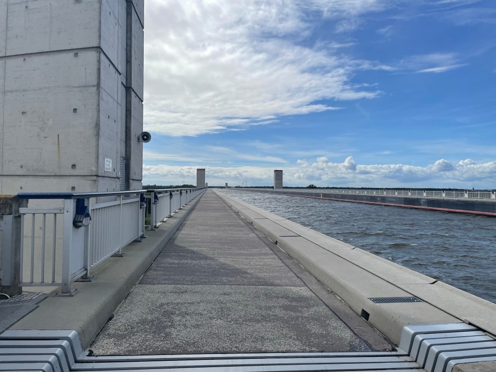 I rode about 20 miles on the train. Missed all the rain, and decided, having completely forgotten about the wind to get out way before my campsite town and ride the rest of the way. I wanted to cross the Elbe on my bike, it’s a brand new (Eu funded) canal bridge that dwarves any others I’ve ridden – there have been a few.