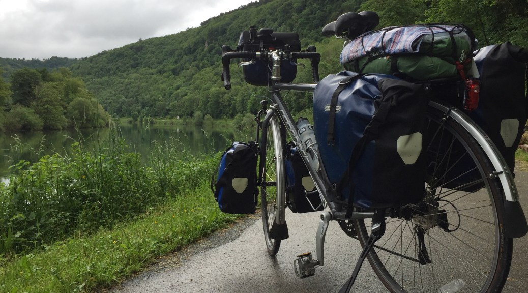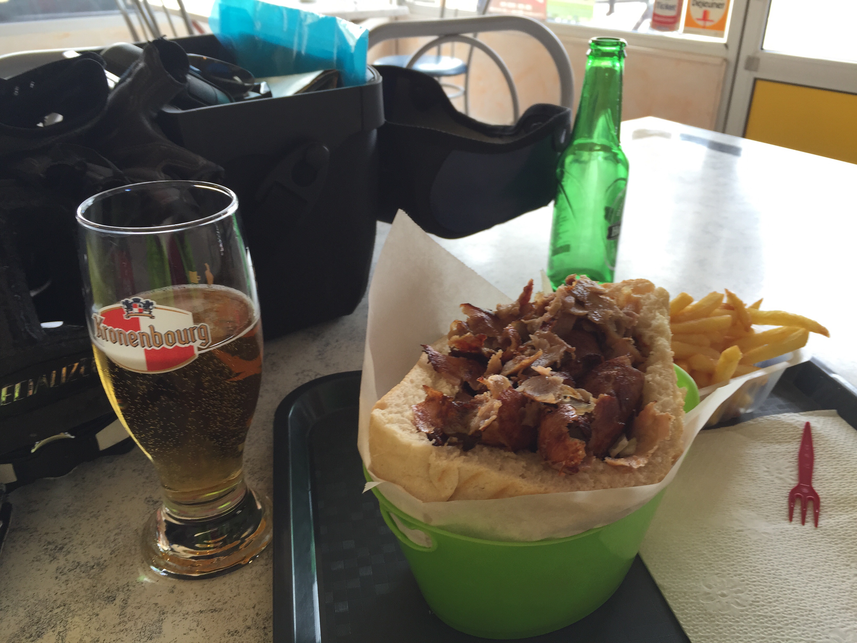 After a ‘Donner’, frites and a Hieneken I was fuelled for the second leg to Belfort, or to be more accurate the Gare de Belfort Montbeliard TGV – which is where I am now and where I will meet my good mate Luke shortly. Have to say I am quite looking forward to the company – will be good to not have to mime everything I am trying to say!! Is a hotel for us this eve and then the Vosges Mountains tomorrow – not sure what I’ve let myself in for as Crispin (new name for bike – cheers Matt, full name Crispin Le Tank) weighs a ton!! As I cycled up from the valley bed at Montbeliard to Belfort I caught my first glimpse of the Vosges – daunting. Going to try and get to a bike shop first thing and get the chain, tyres etc checked as he has taken a bit of a beating today. Anyway, more of this tomorrow and here are some photos of the day. Bon Soir.